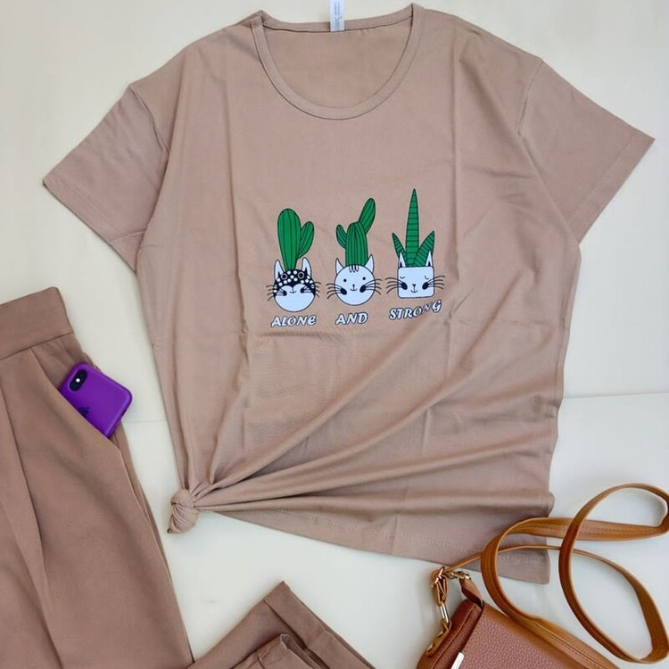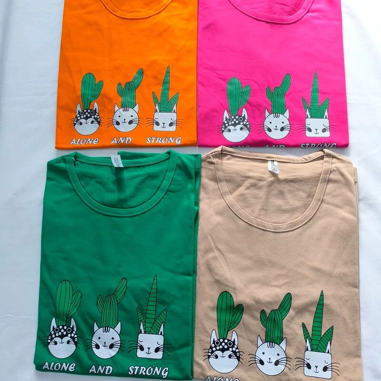 تیشرت زنانه نخ پنبه سوپر تر ک وارداتی طرح کاکتوس فری سایز مناسب سایز 36 تا 44