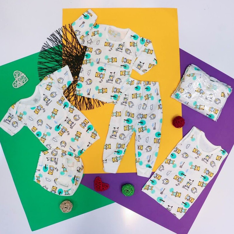 سیسمونی ست بیمارستانی نوزادی 5 تکه طرح خرسی پنبه مناسب بدو تولد سایز 1