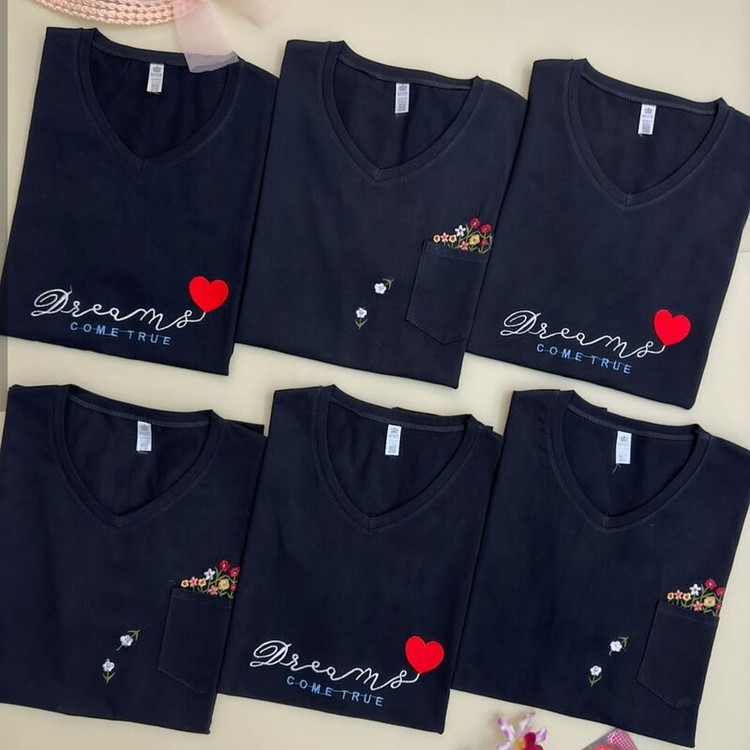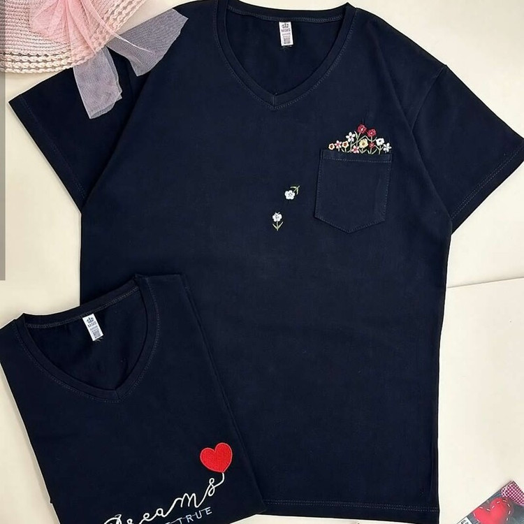 تیشرت نخ پنبه سوپر شیک و خاص طرح یک: جیب دار با طرح گل گلدوزی شده طرح دو : طرح قلب و نوشته گلدوزی شده طرح ها گل دوزی شده بسیار زیبا و ظریف هستن جنس پارچه: نخ پنبه سوپر پارچه اعلا با کیفیت تضمینی رنگ بندی : تکرنگ مشکی قد کار: 70 عرض: 50 سایز بندی : فری سایز قواره دار ( مناسب سایز 38 تا 46 )