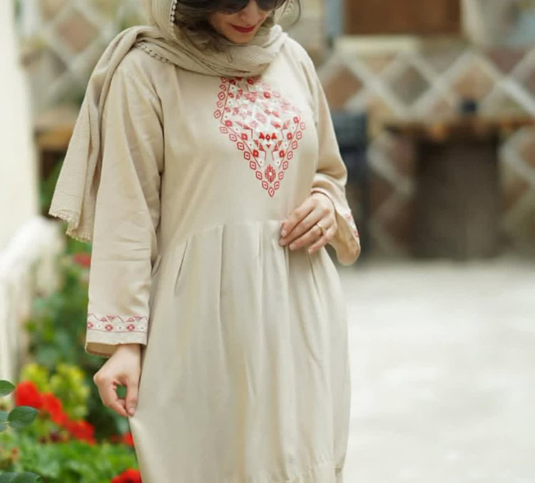 ساحلی نخی چین دار بلند آستین دار یقه سنتی دامن ساحلی چین دار و پله ای هست تنخورش خیلی قشنگیه پارچه نخی شسته شده (بدون آبرفت و رنگ رفت) مناسب سایز ۳۸ تا ۵۰