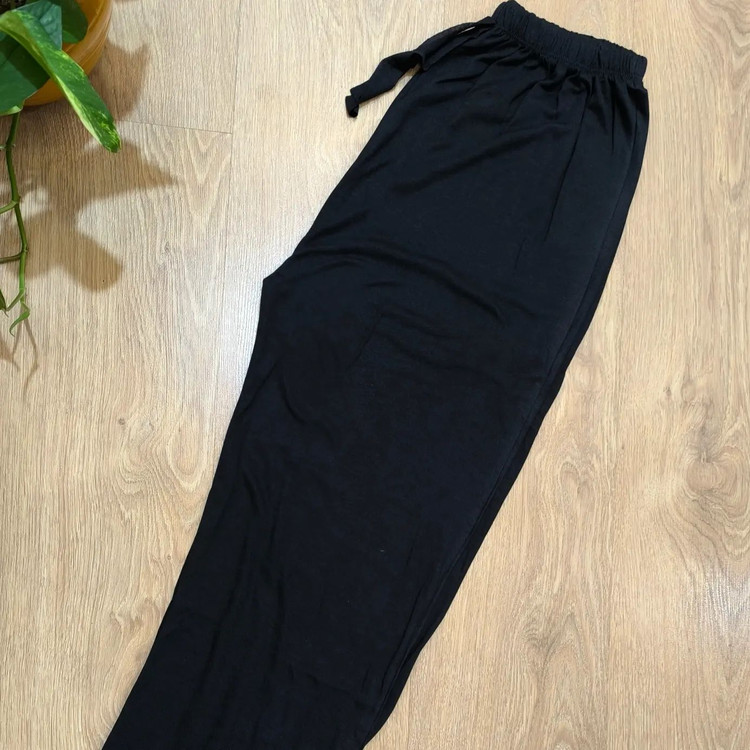 شلوار مشکی راحتی زنانه قواره دار جنس نخ ویسکوز درجه یک و باکیفیت تضمینی فوق العاده نرم و لطیف و خنک کاملا مشکی و اصلا بور نیست دارای کشسانی فری سایز مناسب سایز۳۸ تا ۵۰