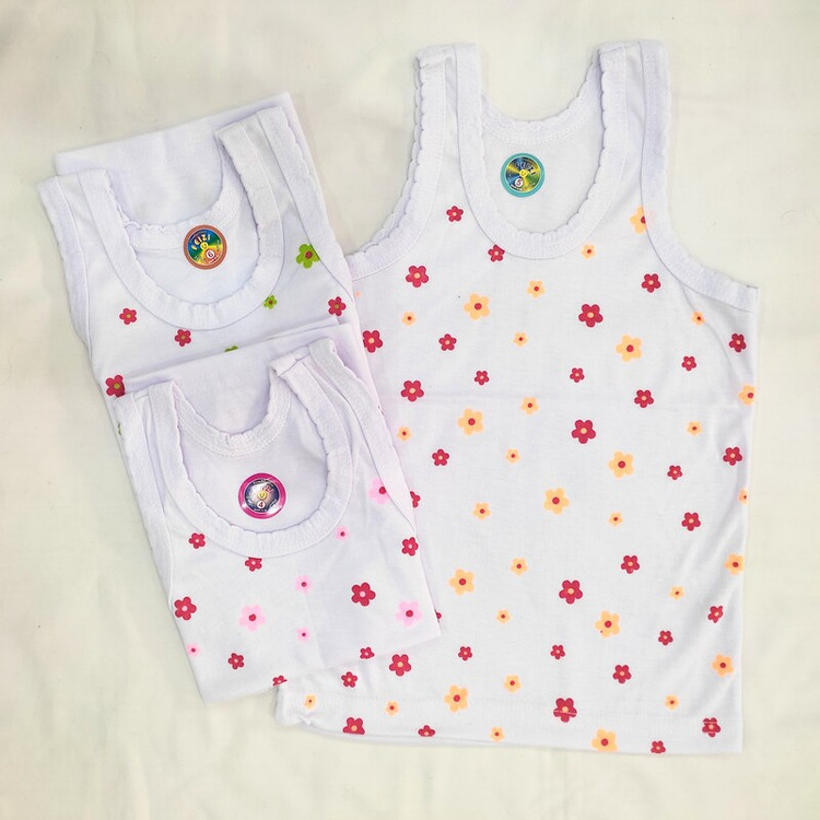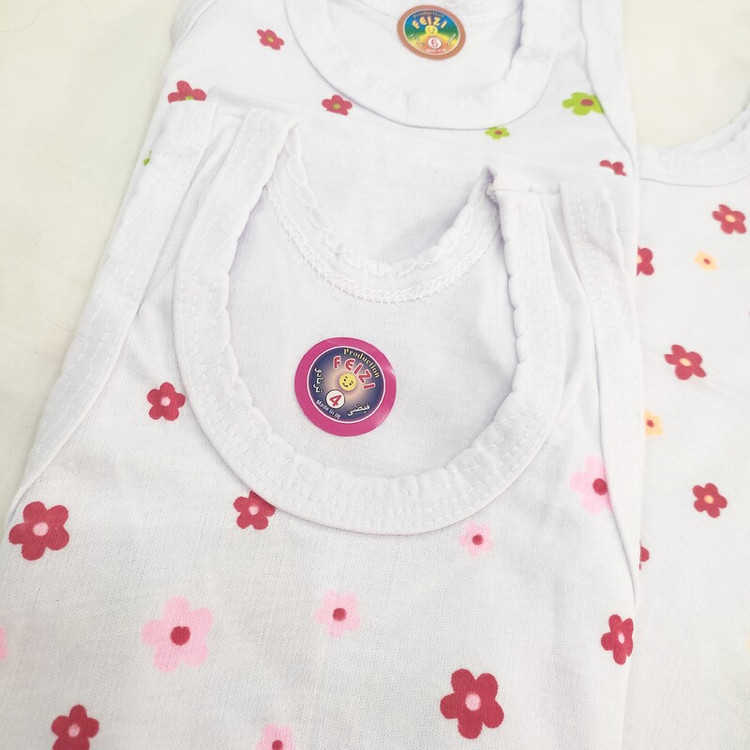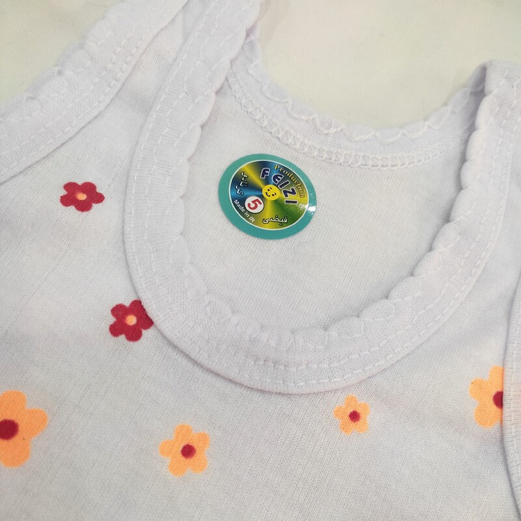 زیر پوش رکابی دخترانه جنس: پنبه اعلا مناسب سایز: ۴_۵_۶(سال) تک رنگ سفید(گل گلی) نرم و لطیف
