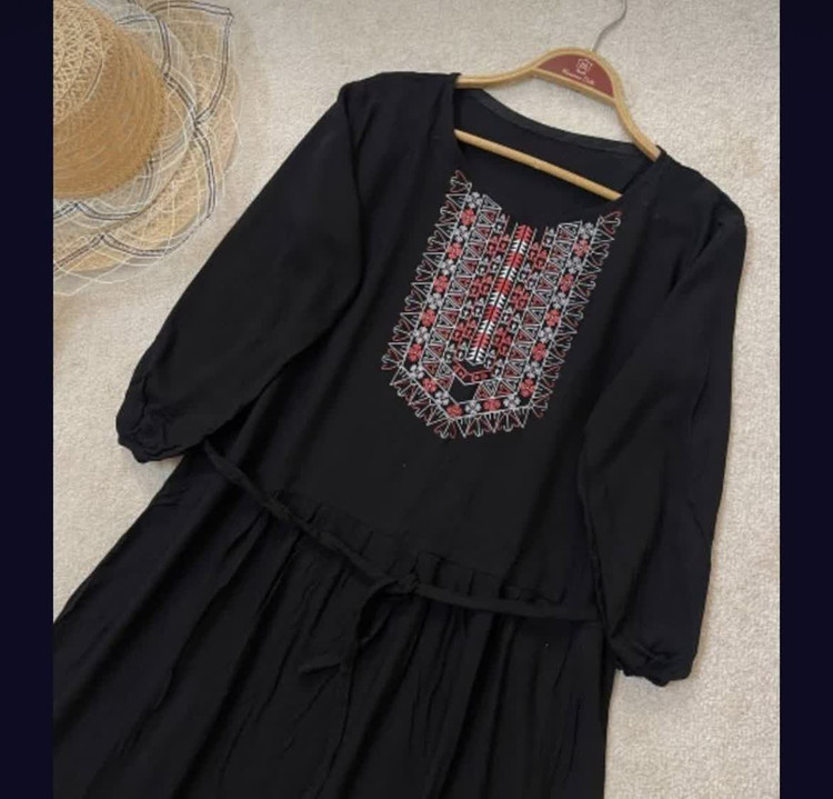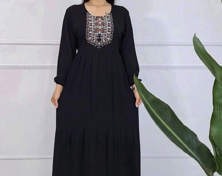 دور سینه: ۱۱۰ دورباسن ۱۴۰/ قد آستین از حلقه آستین: ۴۸ تا ۵۰/ قد پیراهن: ۱۳۰