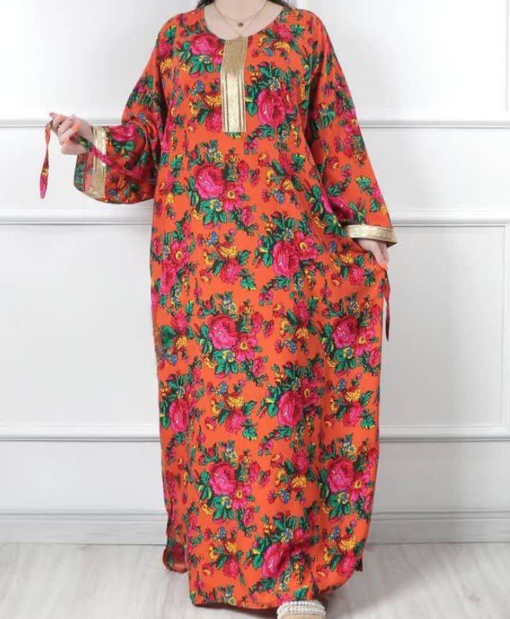 ✅ بلند گلدار آستین دار طلاکوب طرح کفتان و پایین چاک دار