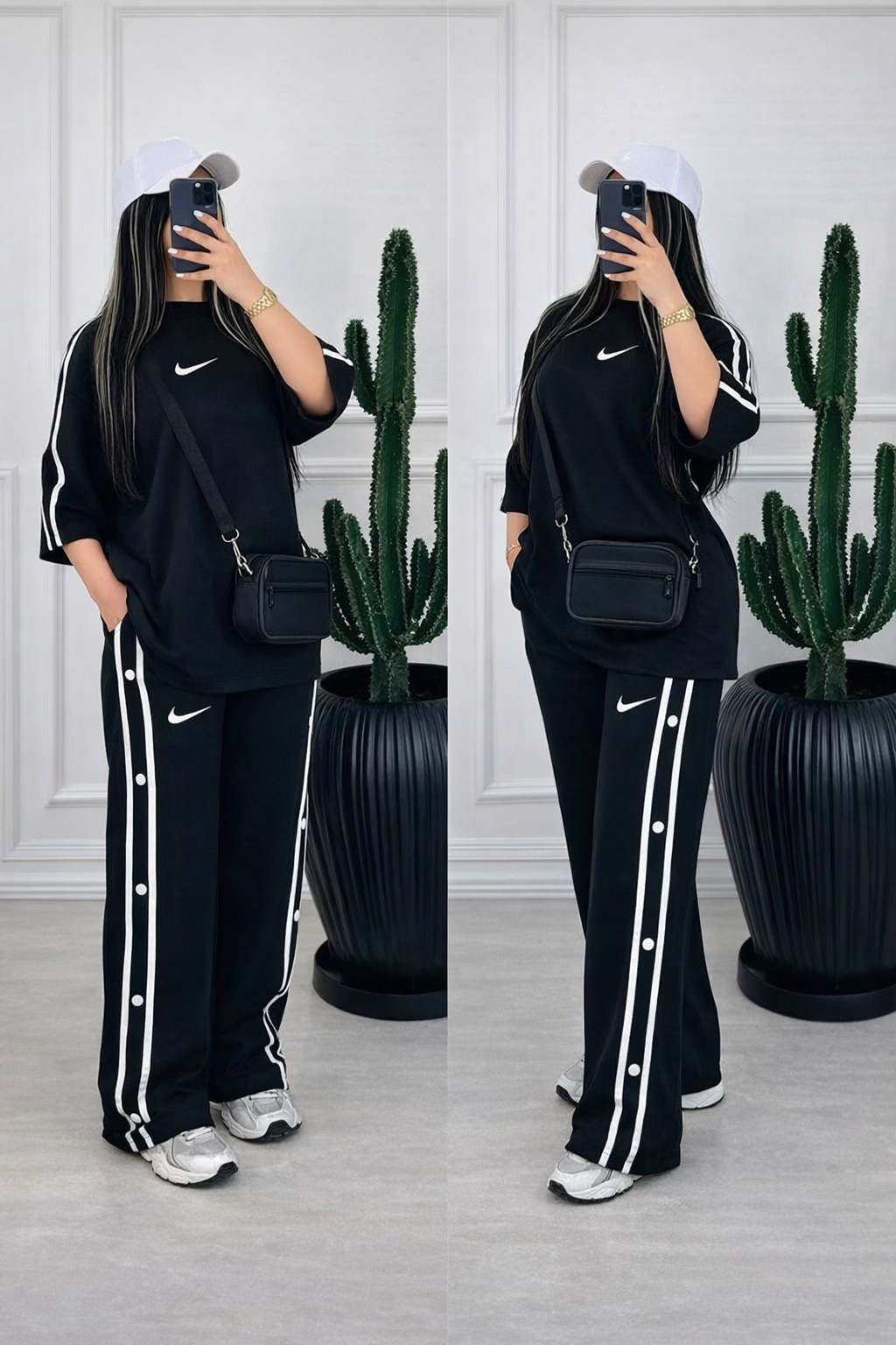 ست ورزشی زنانه ست نایک زنانه تیشرت و شلوار نیم بگ نایک مشکی