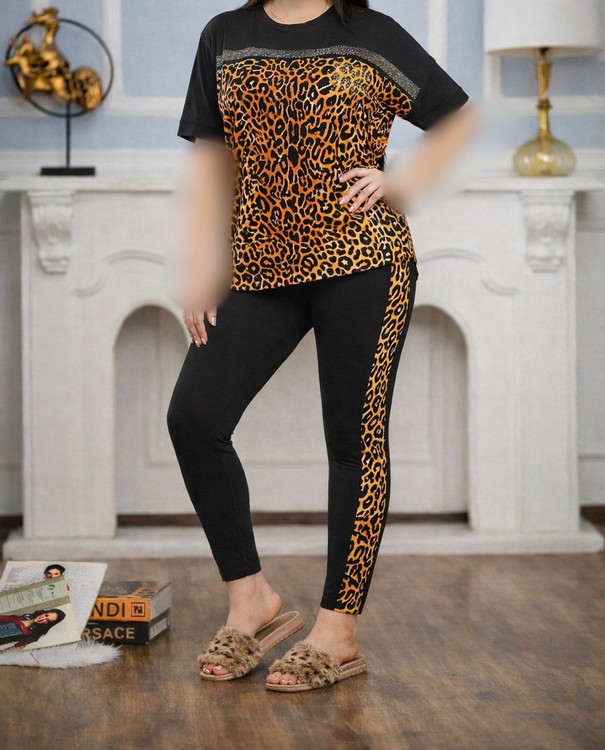 ست پلنگی زنانه ست تیشرت شلوار پلنگی زنانه