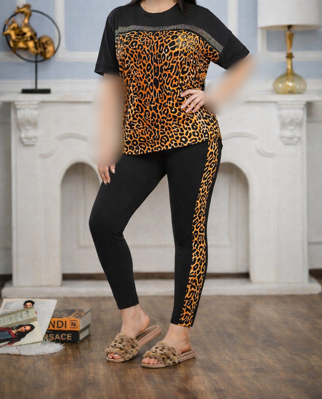 ست پلنگی زنانه ست تیشرت شلوار پلنگی زنانه