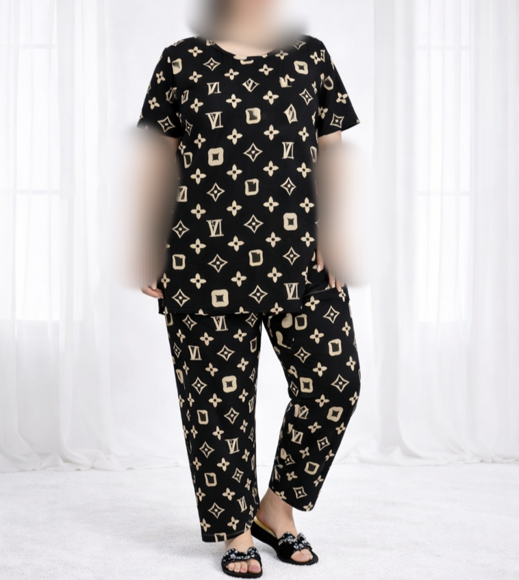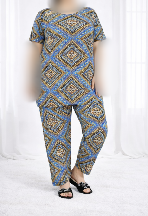 ست نخی زنانه ست تیشرت شلوار زنانه نخی تایلندی مناسب سایز۴۰ تا ۵۰ ست راحتی زنانه قواره بزرگ