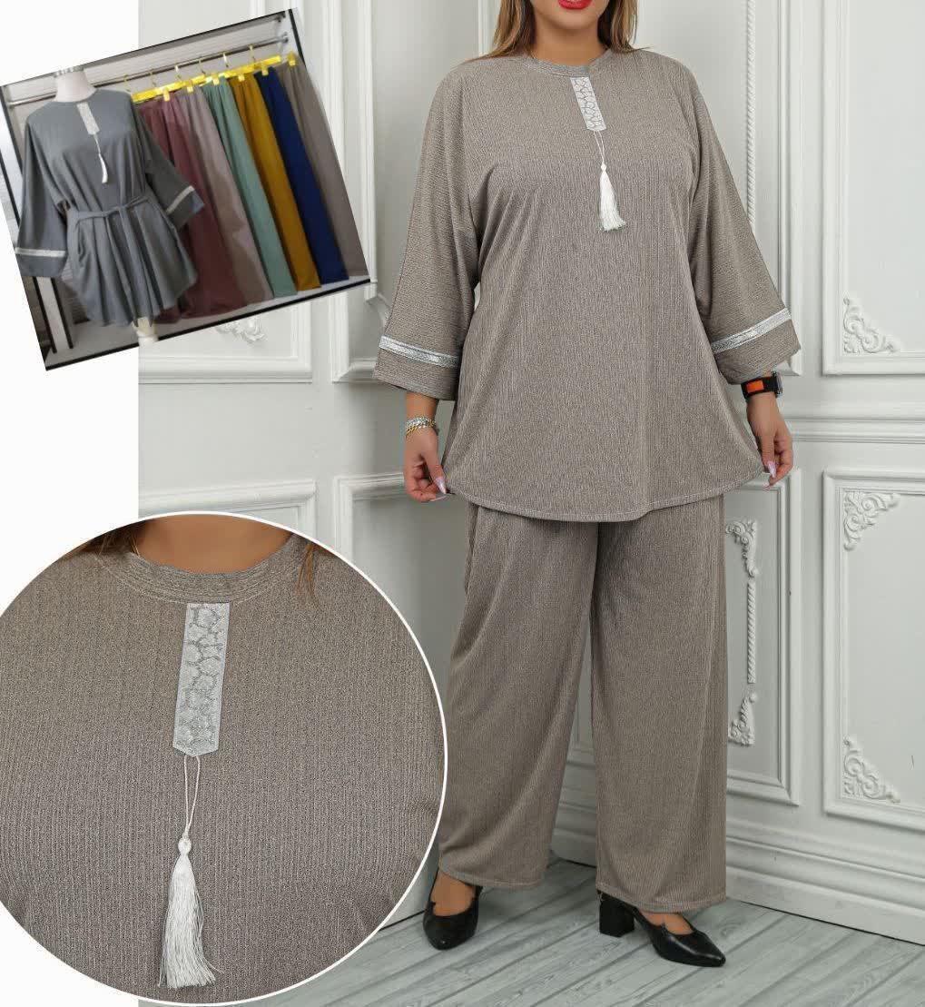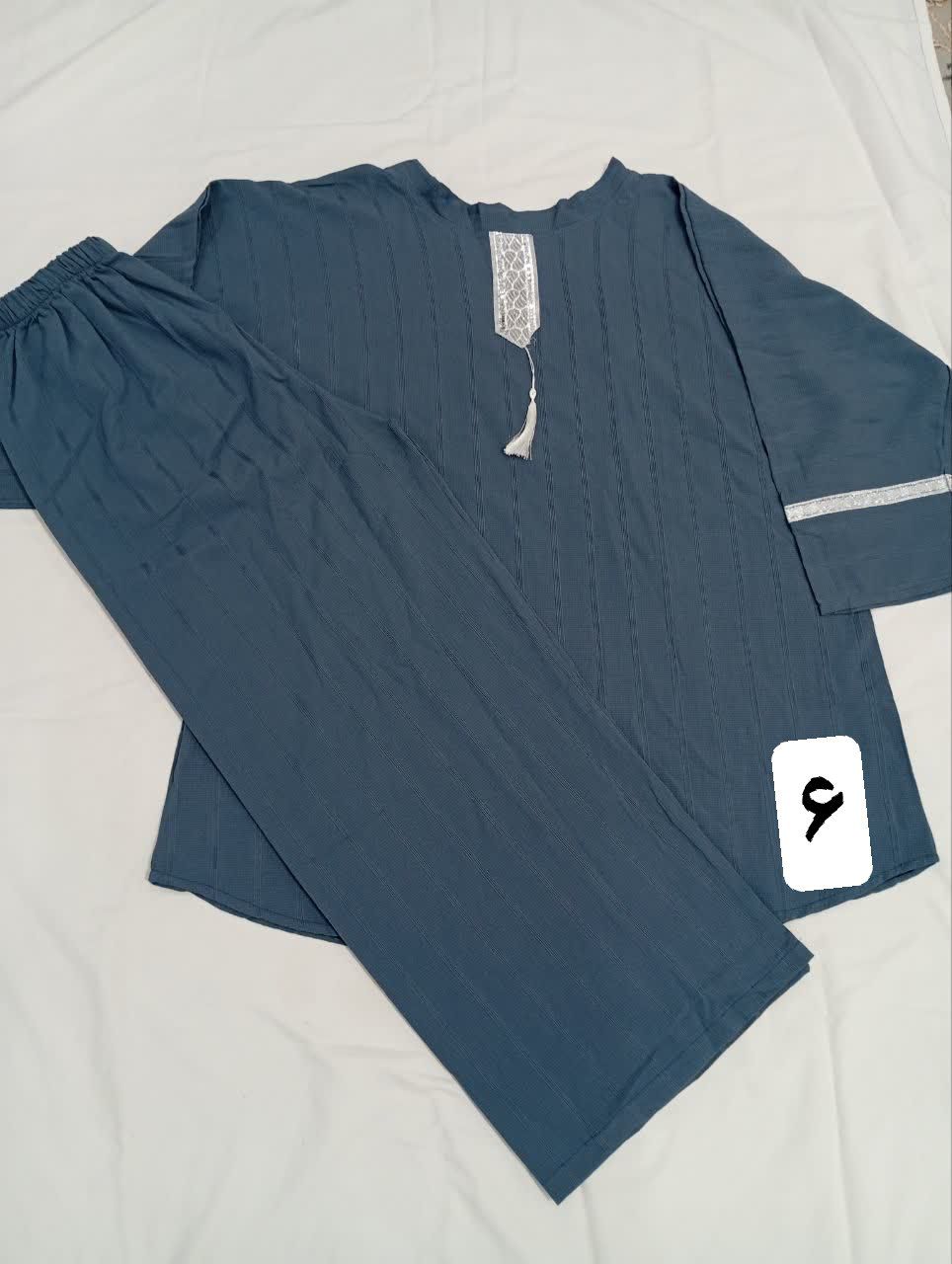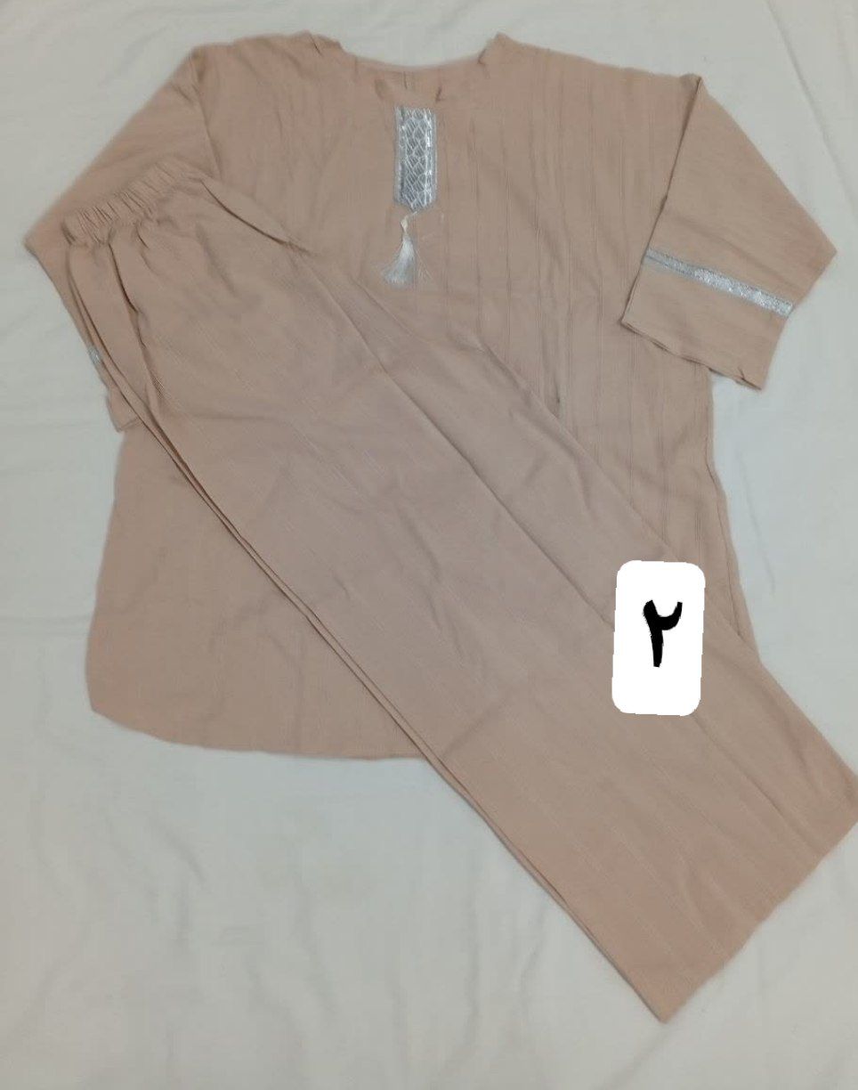 ست تونیک و شلوار جنس کراش آیوا درجه یک نوار دار مناسب سایز۴۲ تا ۵۲ تنخور شیک و جنس عالی دور سینه ۱۲۴ قد تونیک ۸۰ قد آستین از یقه ۶۲ قد شلوار ۱۰۰ دورباسن ۱۲۲ دور ران ۶۴