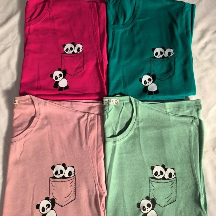 ✨ تیشرت زنانه طرح جیب پاندا ✅ جنس: نخ پنبه درجه یک وارداتی برند دنیز ✅ قواره بزرگ ✅ فری سایز مناسب سایز 38 تا 48 ✅ عرض سینه از یک طرف:53سانتی متر قد تیشرت: 70 ✅ در 10 رنگ جذاب ✅ تنخور شیک و جنس عالی