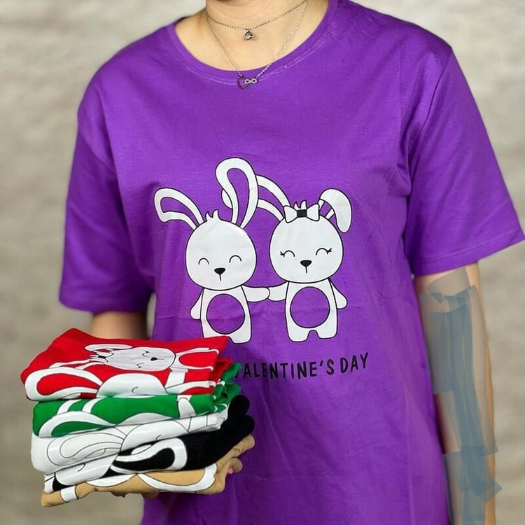 تیشرت لانگ نخ پنبه زنانه طرح فانتزی خرگوشی فری سایز مناسب سایز 38 تا 50 تیشرت قواره بزرگ