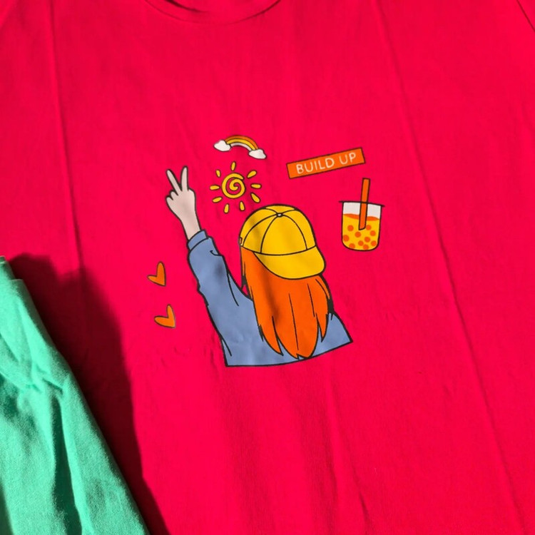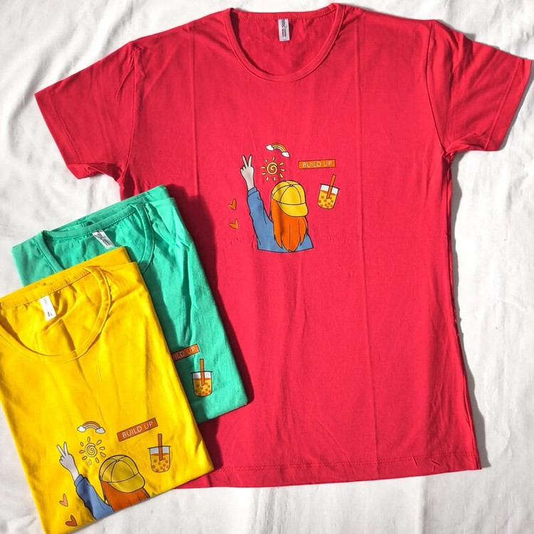 تیشرت نخ پنبه زنانه قواره بزرگ وارداتی طرح فانتزی دختر فری سایز مناسب سایز 38 تا 48 تیشرت زنانه