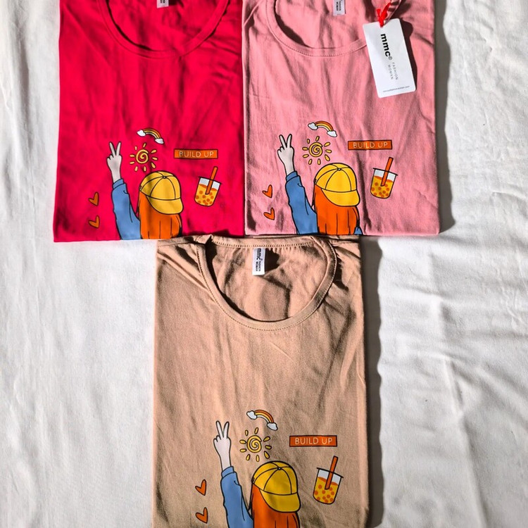 تیشرت نخ پنبه سوپر مدل چاپی گرم بالا دختر موفق برند mmc جنس پارچه: نخ پنبه سوپرپارچه اعلا رنگ بندی : 6رنگ قد تیشرت: 70 عرض سینه از یک طرف: 53 سایز بندی : فری سایز قواره دار ( 38 تا 48)