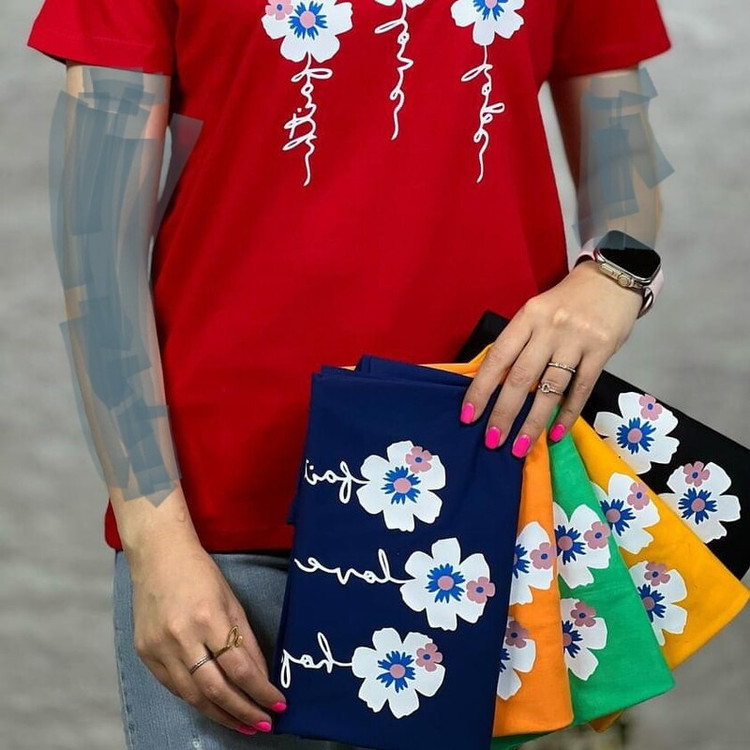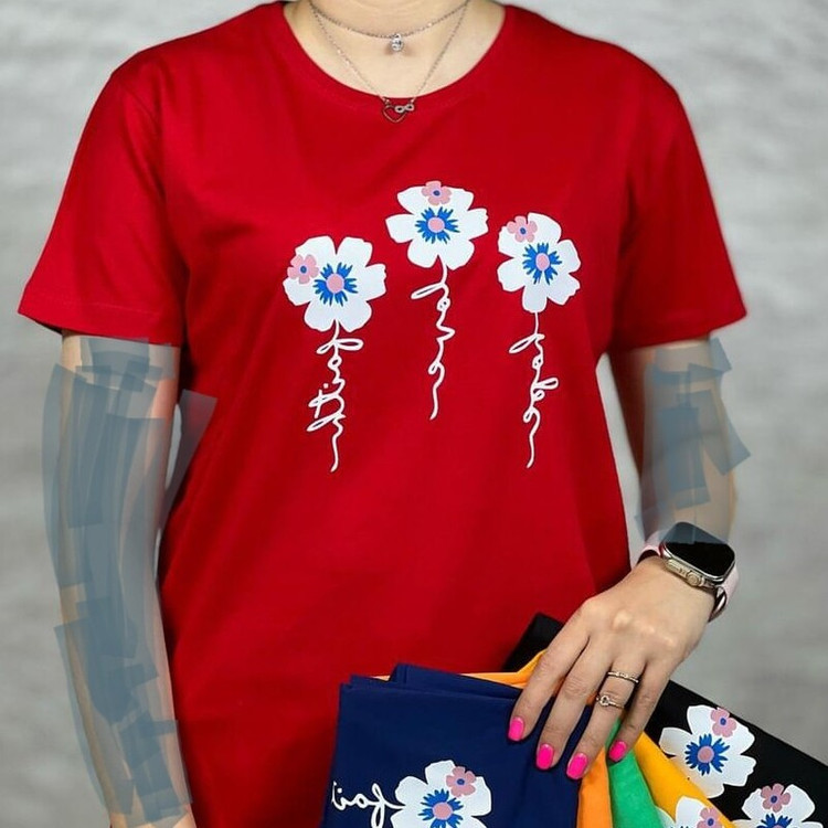 تیشرت نخ پنبه زنانه قواره دار طرح گل تیشرت قواره بزرگ مناسب سایز 38 تا 48 قواره دار